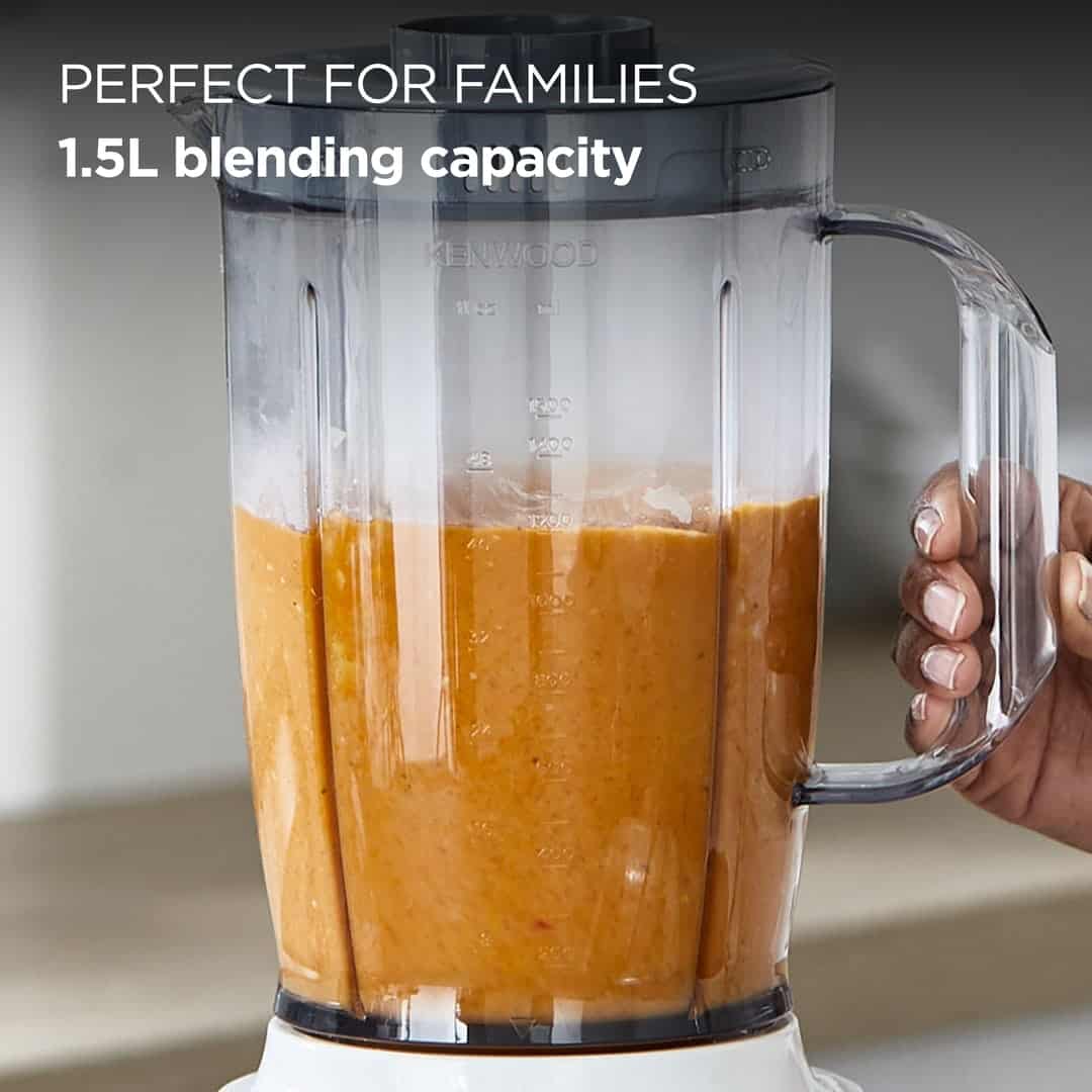 Una licuadora de tamaño familiar con una potencia impresionante de 650 W te permitirá preparar rápidamente todos tus smoothies, sopas, batidos y salsas.
