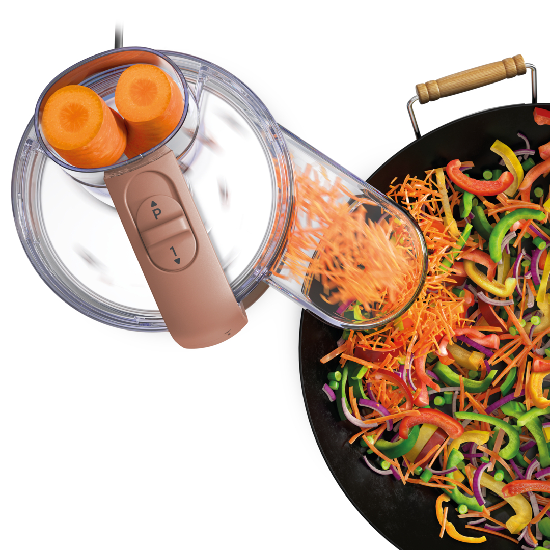 Libera tu potencial de preparación de alimentos con la capacidad ilimitada de Express ServeTM. Además,cuenta con un bol compacto de 1,3 l para picar a diario.