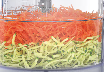 Corta como un cuchillo de cocina y ralla como un rallador con el disco para cortar y rallar MultiPro Go. Sólo tienes que colocarlo para cortar fruta y verdura en rodajas o darle la vuelta para rallar queso:el disco perfecto para ahorrar espacio.